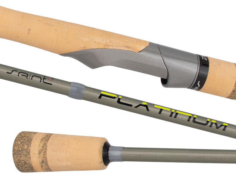 Conta com passadores Fuji, cabo bipartido em cortiça e reel seat Saint esmaltado, seguindo a mesma cor do blank nardo grey. A vara Platinum possui um design moderno sem perder a elegância.